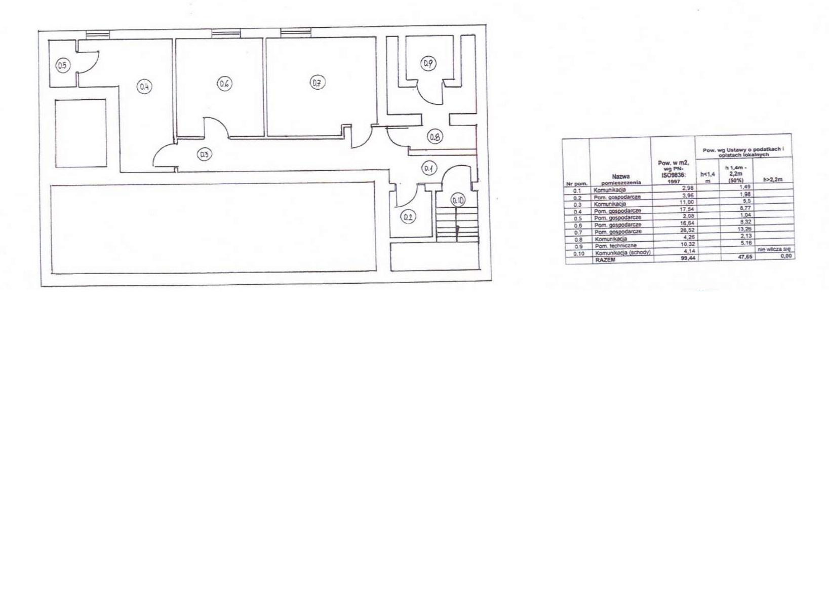 Lokal posiada funkcję magazynową. Stan techniczny określony jako dobry do ewentualnego remontu lub odświeżenia. W ramach oferowanej powierzchni zagwarantowany jest dostęp do pomieszczeń sanitarnych WC. Wyposażony jest w instalację elektryczną, a ogrzewanie jest zapewnione z kotła gazowego obsługującego nieruchomość. Powierzchnia lokalu 54,80 m².